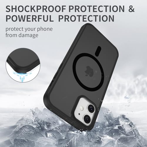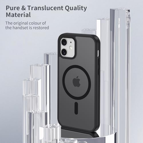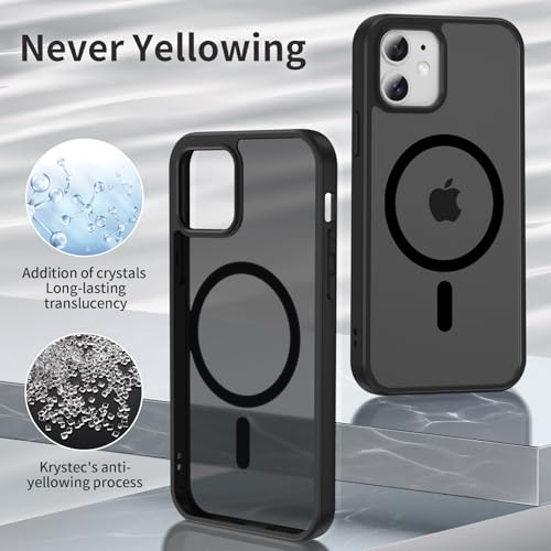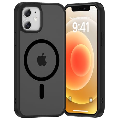 Opkiegrn - جراب خلفي مغناطيسي من البولي كربونات لموبايل آيفون 12/12 برو من اوبكيجرن، متوافق مع الشحن اللاسلكي ماج سيف، مضاد للصدمات، مضاد للاصفرار، مضاد للخدش، أسود