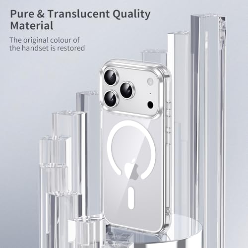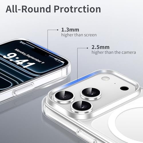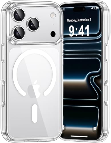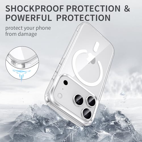 Opkiegrn - جراب مغناطيسي شفاف صلب من البولي كربونات مضاد للخدش والصدمات مع ممتص للصدمات من بولي يوريثين مقاوم للحرارة المرن والناعم متوافق مع آيفون 17 برو من اوبكيجرن