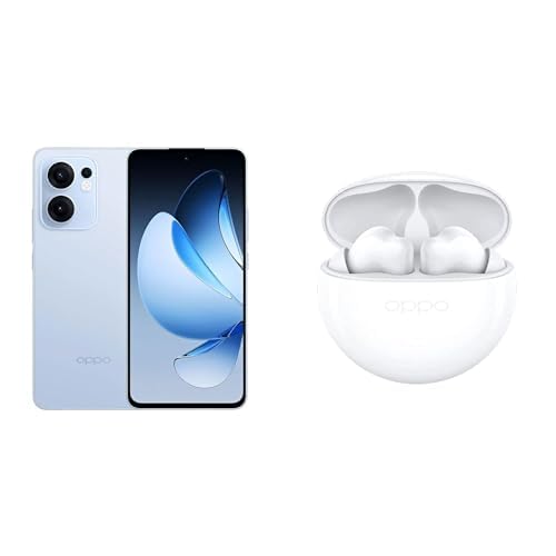 Oppo Reno - موبايل أوبو رينو 13F شبكة الجيل الرابع 4G بشريحتين اتصال وذاكرة رام 8 جيجابايت وسعة تخزين 256 جيجابايت، لون أزرق + أوبو إينكو بادز 2 - سماعات رأس لاسلكية أبيض