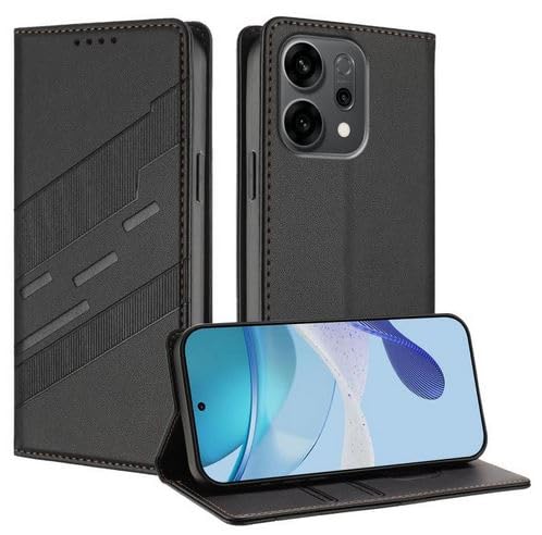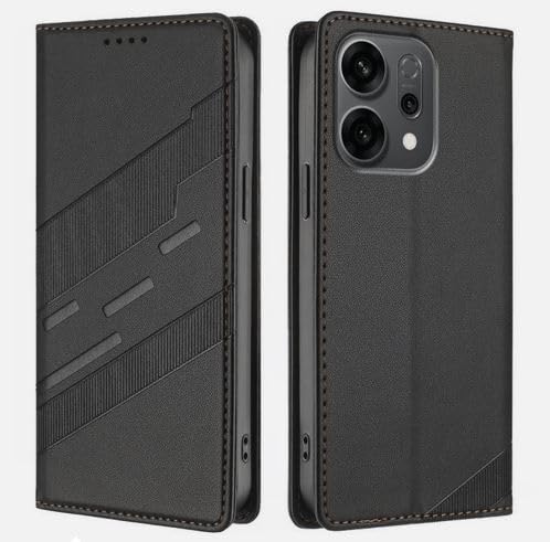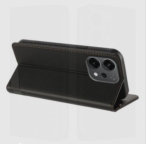 Generic - جراب اوبو رينو 14f حماية فيليب قابل للطي من الجلد الصناعي مقاوم للصدمات و مزود بحماية خاصة للكاميرا مع حامل بطاقات وكروت متوافق مع هاتف oppo reno 14f cover (black)