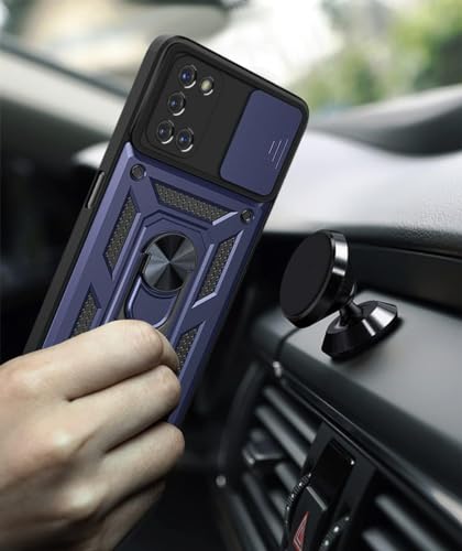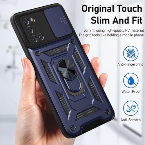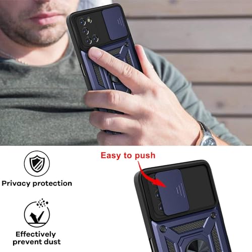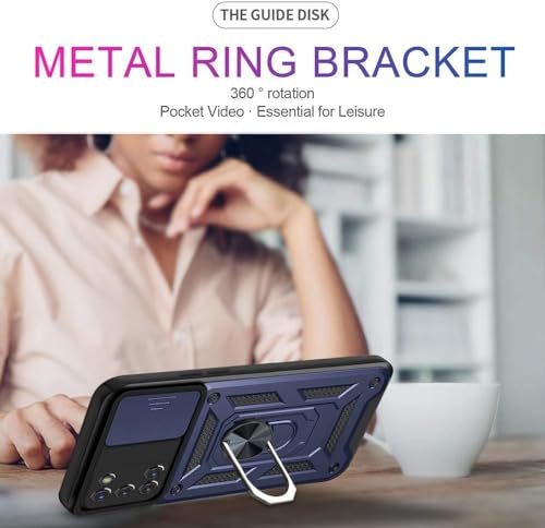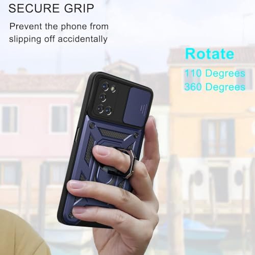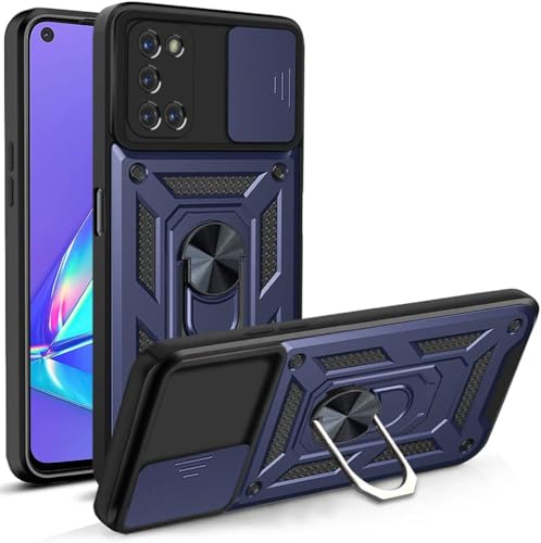 Generic - جراب حماية خلفي مع غطاء منزلق للكاميرا وحامل حلقي مدمج، مضاد للصدمات، لموبايل اوبو رينو 5 بشبكتي الجيل الرابع والخامس، أزرق، سيليكون