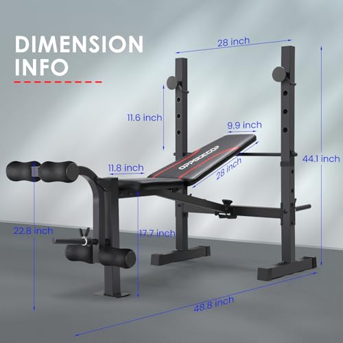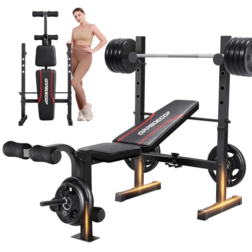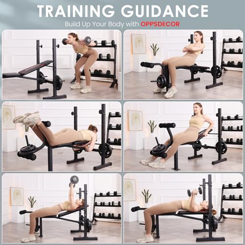 OPPSDECOR - طقم مقعد أوزان قابل للتعديل مع حامل ضغط وقرفصاء وتمارين الأرجل من اوبسديكور، مناسب لصالة الألعاب المنزلية، لتمارين الجسم بالكامل - مقعد تدريب قياسي قابل للطي للبالغين والمراهقين