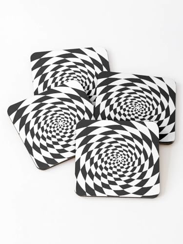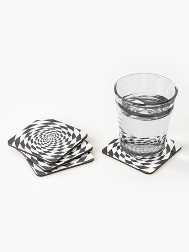Generic - قواعد اكواب من اوبتيكال ايلوجن او بي ارت باللونين الاسود والابيض (مجموعة من 4 قطع)