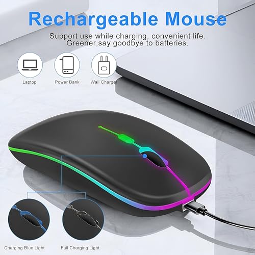 - ماوس لاسلكي بتردد 2.4 جيجاهرتز مع إضاءة LED ونقرات صامتة للغاية لتشغيل هادئ بدون مجهود عبر إعدادات سطح المكتب أو اللاب توب.