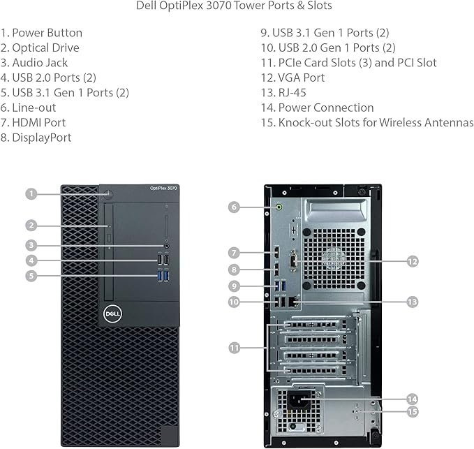Generic - كمبيوتر مكتبي اوبتيبليكس 3070 ام تي تاور من ديل، معالج الجيل التاسع انتل كور i5-9500 سداسي النواة، وبطاقة رسومات انتل UHD 630، مشغل دي في دي، ويندوز 10 برو