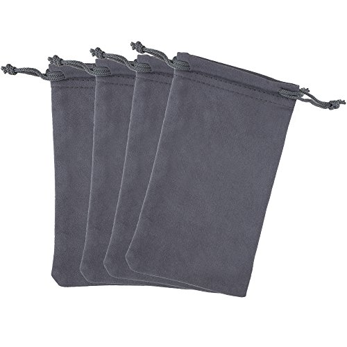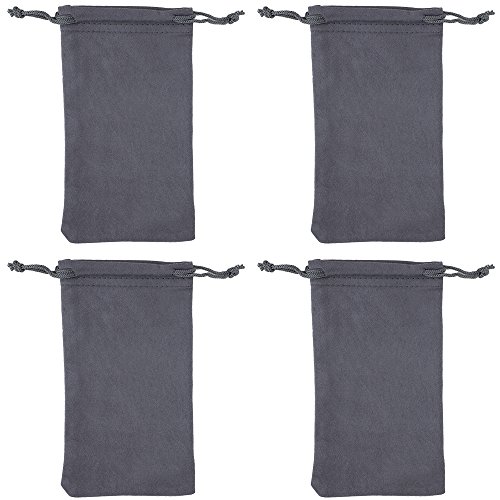 OptiPlix - حافظة نظارات من المايكروفايبر، 4 قطع، للمجوهرات والهواتف الذكية وحامل النظارات، رمادي داكن