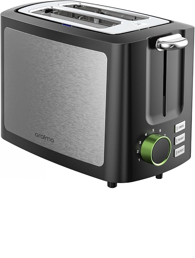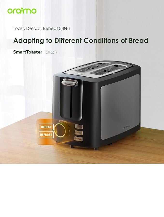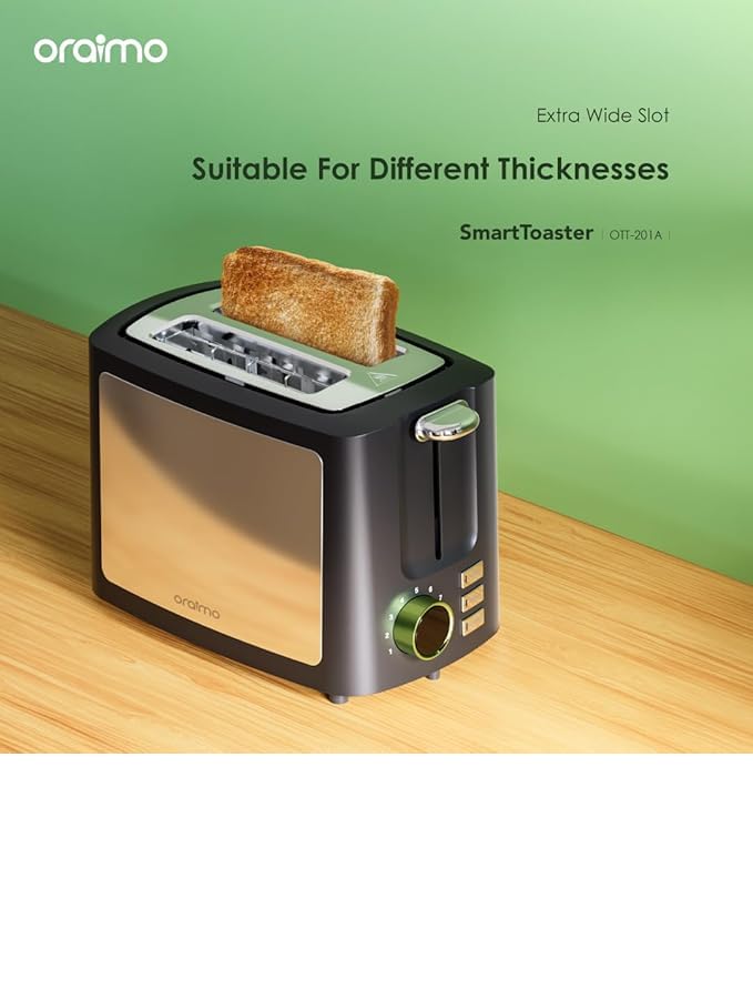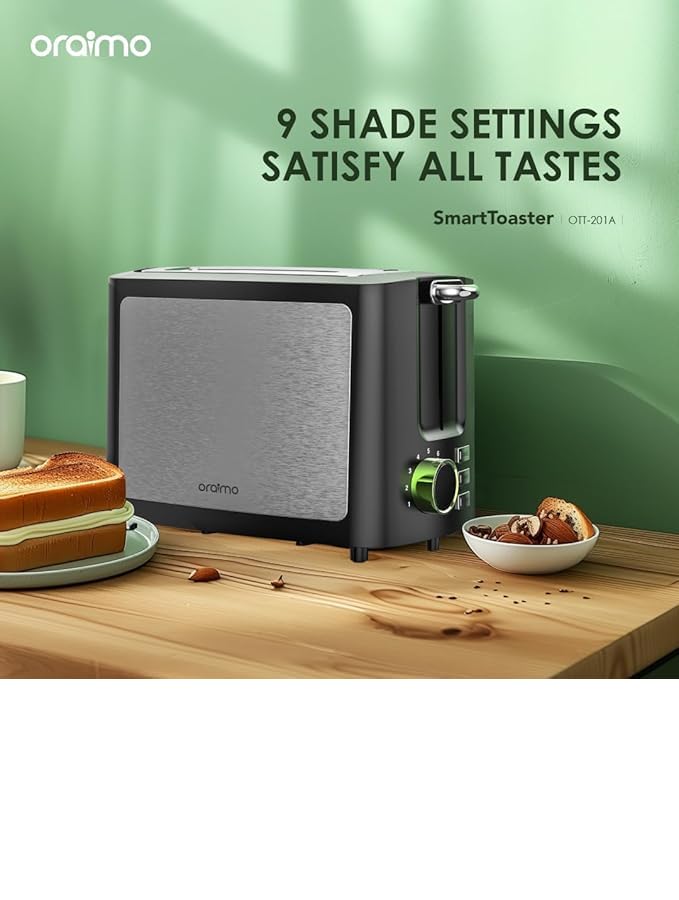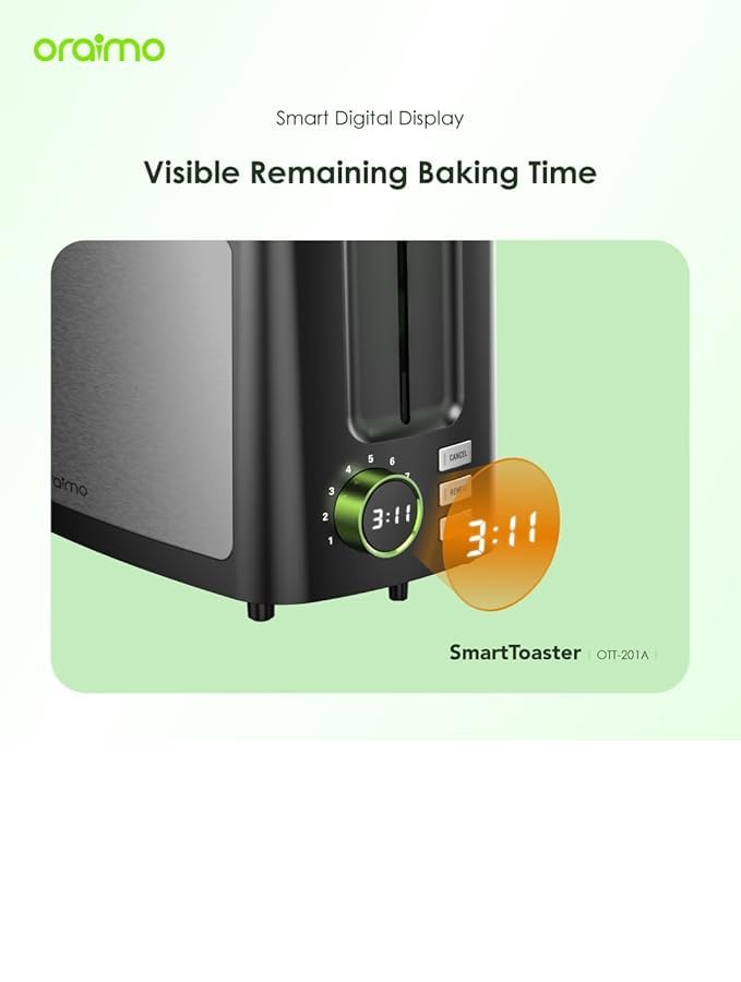 Oraimo - محمصة خبز ذات شريحتين مع شاشة رقمية ذكية وخاصية إذابة الثلج وإعادة التسخين 3 في 1 وبـ 9 إعدادات تحميص وفتحة عريضة للغاية وصينية فتات قابلة للإزالة وسهلة التنظيف وترضي جميع الأذواق من اورايمو