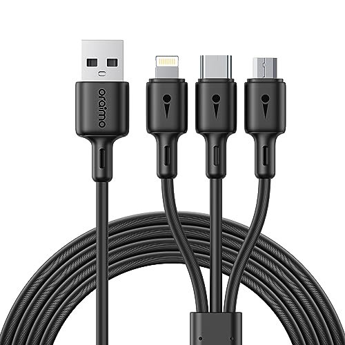 Oraimo - كابل شحن 3 في 1 من أورايمو، كابل شحن 3 أمبير مع منفذ مايكرو USB ونوع سي ومنفذ لايتنينج متوافق مع أجهزة أندرويد وiOS وأجهزة نوع سي، بطول 1.2 متر، أسود