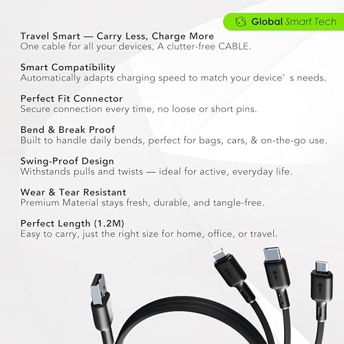 - 【شحن سريع بقدرة 3 امبير】 يوفر كابل الشحن السريع 3 في 1 مرونة وراحة مثالية، حيث يدعم الشحن السريع بقدرة 3 امبير لتحقيق كفاءة استثنائية. وبفضل تقنية الشحن المتطورة، يتيح لك هذا الكابل شحن أجهزتك بسرعة وكفاءة عالية.