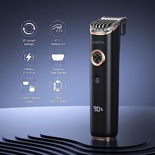 Oraimo - ماكينة تشذيب الشعر اللاسلكية الاحترافية سمارت تريمر 2 من أورايمو للرجال مع 20 إعدادًا للطول، وقت تشغيل 240 دقيقة، شحن سريع من النوع سي، دعم الشحن اللاسلكي، شاشة LED
