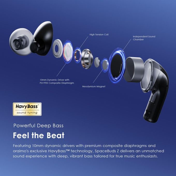 Oraimo - سماعات أذن سبيس بادز زد ترو لاسلكية OTW-625 من اورايمو بتقنية إلغاء الضوضاء النشطة المتقدمة والصوت المكاني ببطارية طويلة الأمد لتجربة صوتية ممتازة - لون ذهبي فاتح