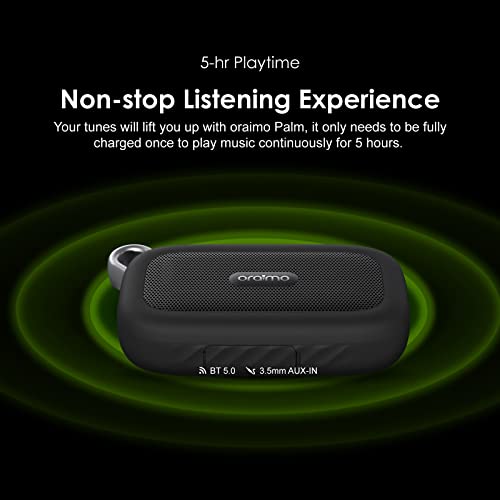 Oraimo - اورايمو مكبر صوت بلوتوث لاسلكي محمول مع صوت بجودة الاستوديو، صوت جهوري قوي، وقت تشغيل 5 ساعات، مقاوم للماء بدرجة IPX7، بلوتوث 5.0 وميكروفون مدمج، في الاذن