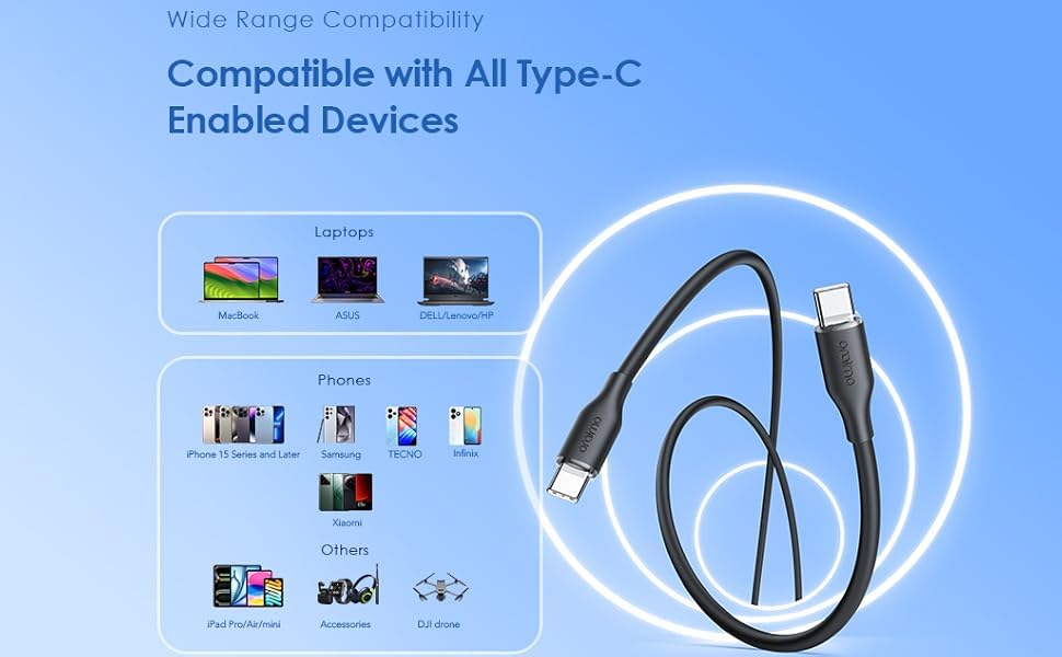 Oraimo - كابل سيلك لاين نوع سي إلى نوع سي OCD-115CC، شحن سريع 60 وات، تصميم ممتاز خالٍ من التشابك من اورايمو، طول 1 م، لون أسود