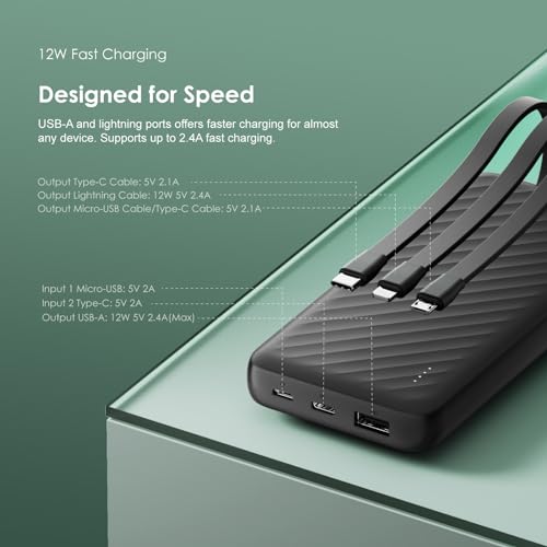Oraimo - باور بانك سلايس لينك من اورايمو 10000 مللي امبير في الساعة 12 واط، شحن سريع، 3 كيبلات شحن مدمجة، حماية متعددة الطبقات