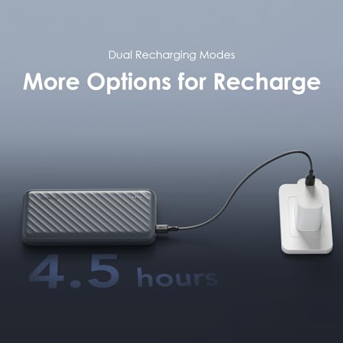 - 【أوضاع شحن مزدوجة لتلبية المزيد من خيارات الشحن】 أعلى طريقة إعادة شحن تأتي مع منفذي إعادة الشحن من النوع سي ومنفذ USB مايكرو، حتى تتمكن من اختيار طريقة إعادة الشحن. يمكن إعادة شحن الباور بانك بالكامل في غضون 4.5 ساعة باستخدام الشحن السريع وتقنية توصيل الطاقة.