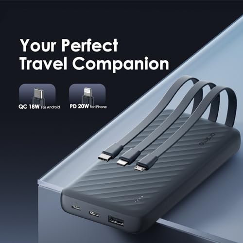 - 【 رفيقك المثالي في السفر والذي يوفر شحن سريع مع 3 منافذ شحن مدمجة】 مزود بكابلات شحن مدمجة من النوع سي ومايكرو يو اس بي، يمكن للباور بانك تلبية احتياجاتك اليومية من الشحن بشكل سهل ومريح مع توفير تجربة شحن سريع محسنة.