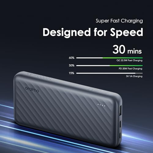 Oraimo - باور بانك سلايس لينك برو بسعة 10000 مللي امبير في الساعة وقدرة 22.5 وات شحن فائق السرعة من اورايمو، 3 كابلات شحن مدمجة، توافق عالمي، حماية متعددة الطبقات