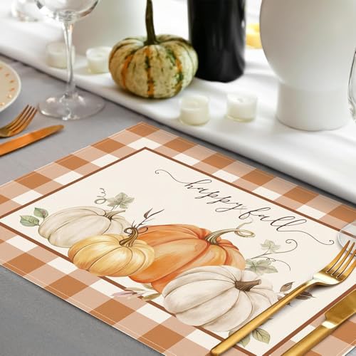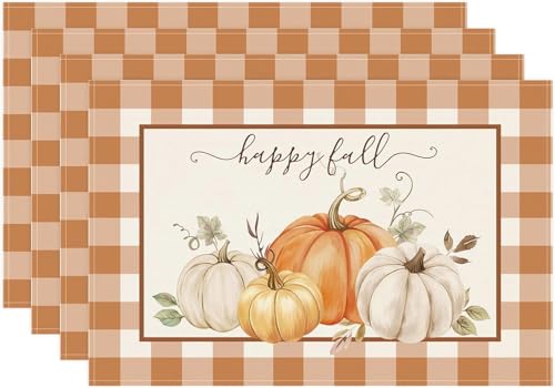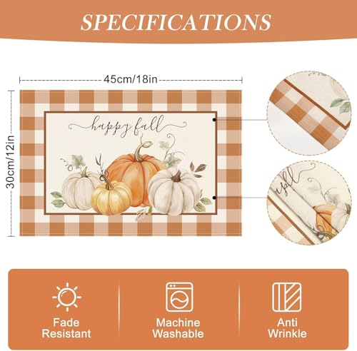 Generic - مجموعة من 4 قطع من المفارش البرتقالية اليقطين واوراق الخريف مقاس 12 × 18 انش، مفارش طاولة طعام للمطبخ وعيد الشكر قابلة للغسل للاستخدام الداخلي والخارجي وديكور الحفلات المنزلية
