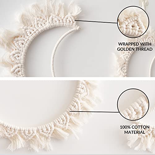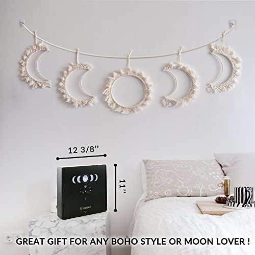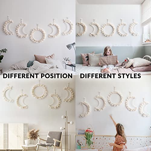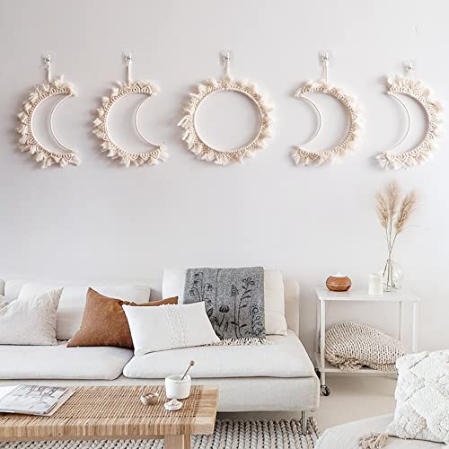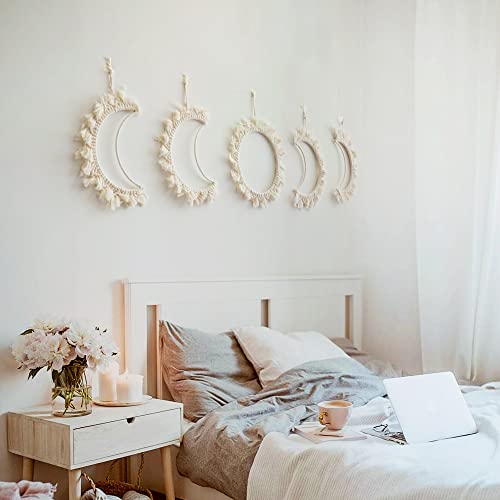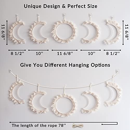 ORANGESCE - مكرمية بنمط مراحل تكون القمر على الطراز البوهيمي من اورانجيس، قطعة فنية جدارية أنيقة ومميزة مصنوعة يدويا من حبل قطني أبيض لتزيين منزلك وغرفتك، 5 قطع، لون أبيض