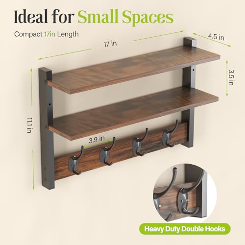 Orapoke - رف حائط من طبقتين مع خطافات من اورابوك، حامل معطف 17 انش يثبت على الحائط مع رف، خطافات مفاتيح للحائط مع رف، خطافات معاطف مثبتة على الحائط مع خمسة خطافات مزدوجة شديدة التحمل لغرفة النوم وغرفة المعيشة