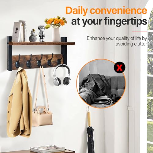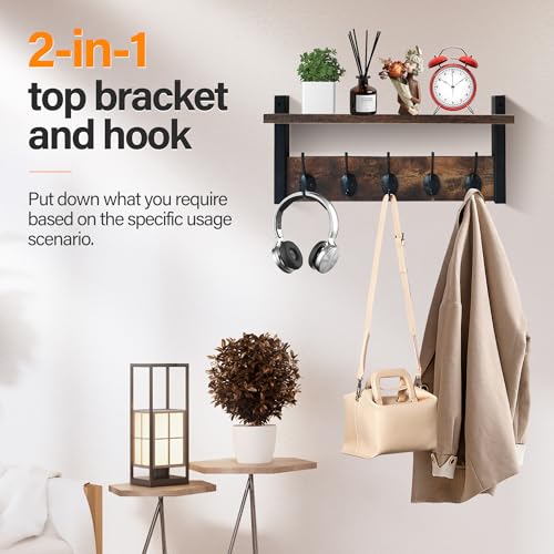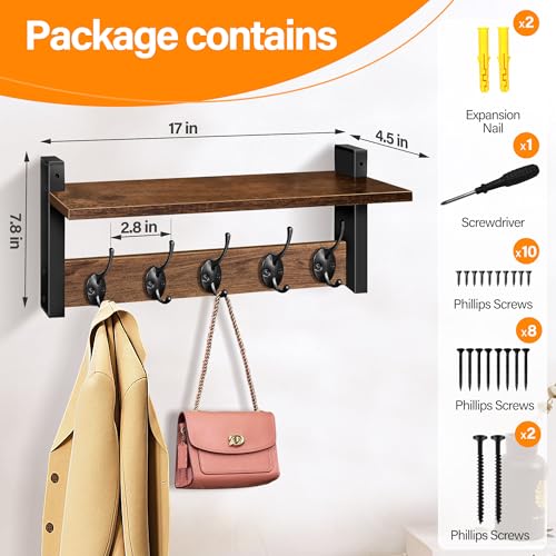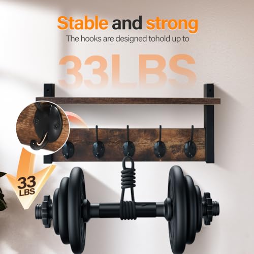 Orapoke - رف حائط مع خطافات من اورابوك، حامل معطف 17 انش يثبت على الحائط مع رف، خطافات مفاتيح للحائط مع رف، خطاف معطف يثبت على الحائط مع 5 خطافات مزدوجة شديدة التحمل للحمام وغرفة النوم وغرفة المعيشة
