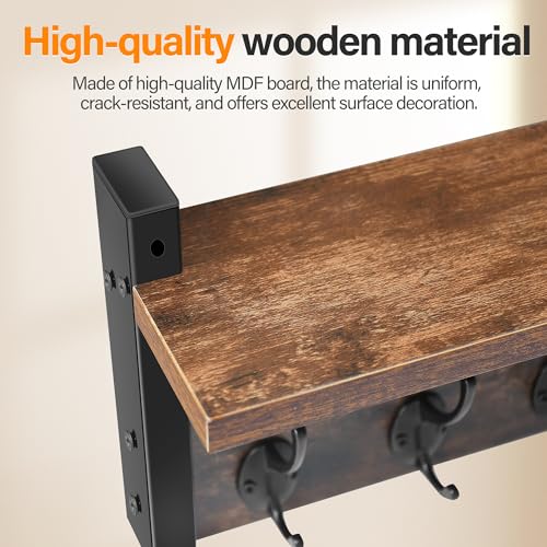 - 【تحمل قوي】رف الحائط هذا المزود بخطافات مصنوع من خشب ليفي متوسط الكثافة عالي الجودة ومعزز بخطافات حديدية عالية القوة، قادر على دعم ما يصل إلى 33 باوند. مصممة لتكون متينة وموثوقة، ومناسبة للاستخدام الشاق. بعد اختبار صارم، أكد جدار الخطاف الخاص بنا، الذي يزن 2.5 باوند فقط، قدرته على دعم الأحمال الثقيلة دون المساس بسلامته. يمكنك استخدام جدار الخطاف هذا بكل ثقة، مع العلم أنه يمكنه تحمل وزن متعلقاتك.