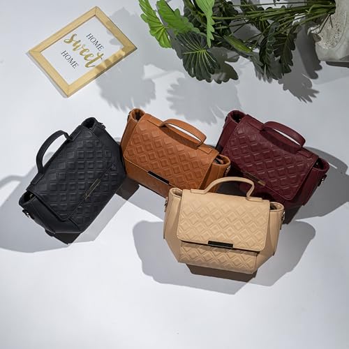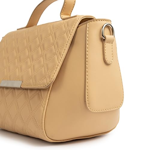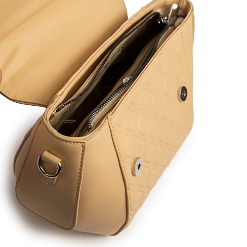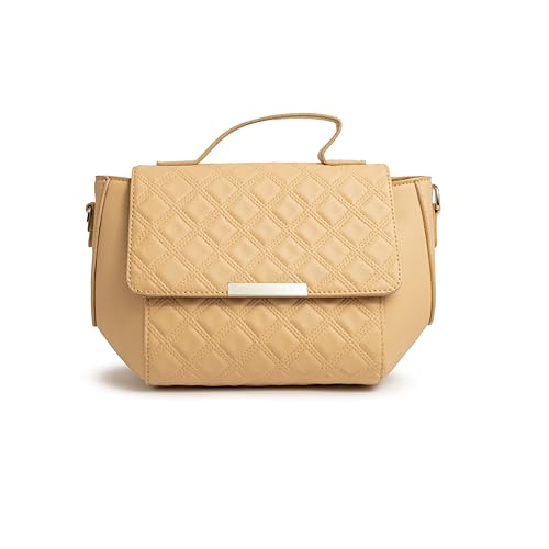 Orbella - شنطة يد ساتشيل مبطنة للنساء بمقبض علوي، شنطة كروس من الجلد بلمسة معدنية من اوربيلا، بيج غامق