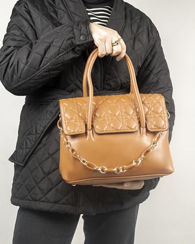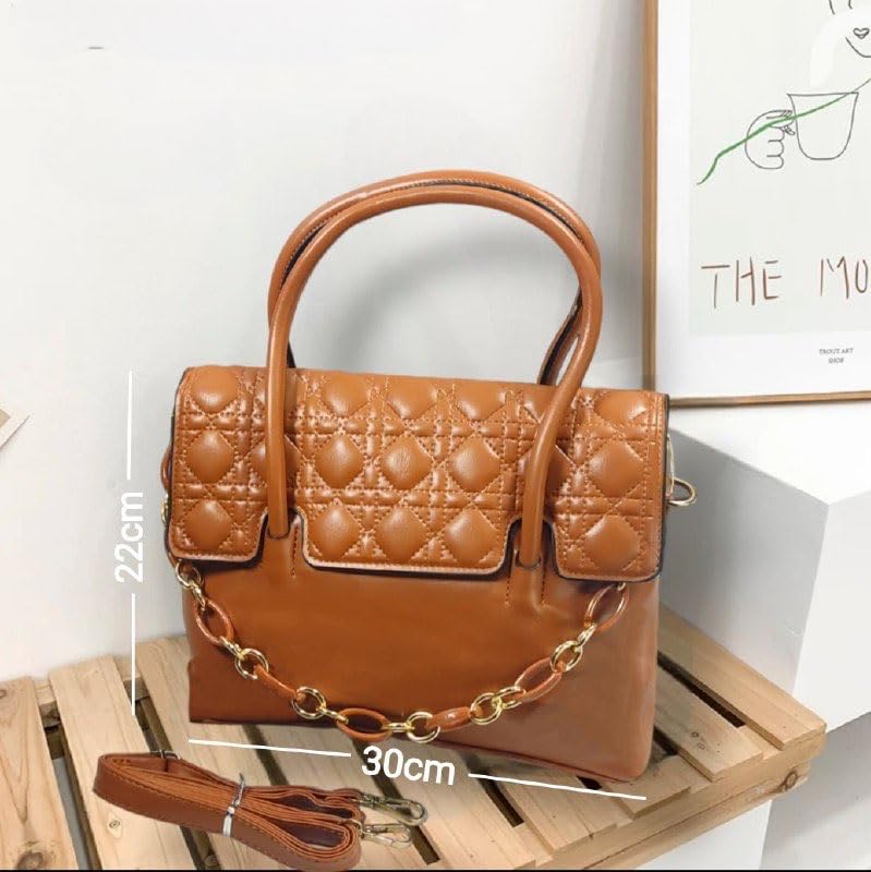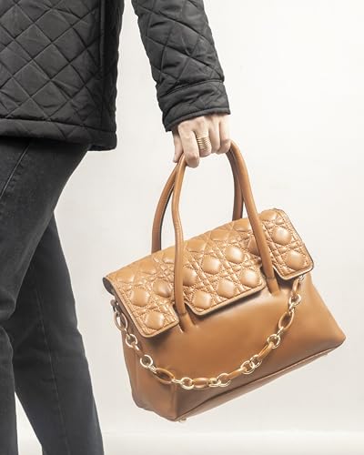 Orbella - شنطة يد وشنطة كروس h2 من الجلد مبطنة بحزام سلسلة للنساء من اوربيلا