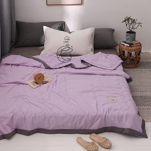 Generic - لحاف صيفي قطن من أوركيد – خفيف الوزن بحشو فايبر، مقاس 220×240 سم مع 2 كيس خدادية (اللون الموف الفاتح والاطار رمادي غامق)
