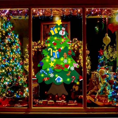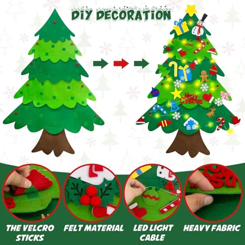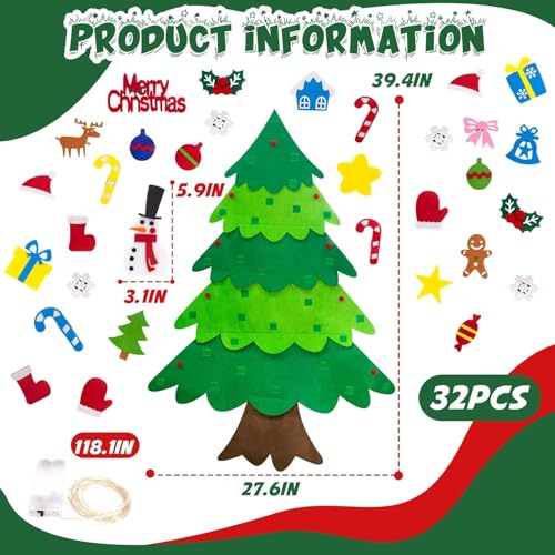 - 【تغليف صندوق هدايا رائع】: شجرة الكريسماس المصنوعة من اللباد مع تغليف صندوق هدايا، امنح الأطفال مفاجأة كبيرة. مجموعة شجرة الكريسماس المصنوعة من اللباد بطول 3.2 قدم مع 34 قطعة زينة قابلة للفصل (سانتا كلوز، رجل الثلج، ندفة الثلج، جوارب الكريسماس، الحلوى، الأجراس، شريط الإضاءة، إلخ)، رائعة لتزيين حفلات الكريسماس