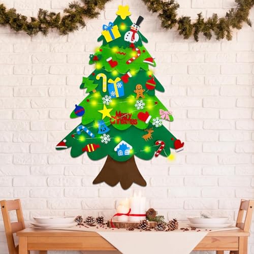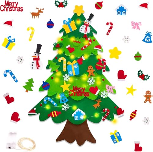GOUKAWADA - اوركيد ام® مجموعة شجرة الكريسماس المصنوعة يدويًا من اللباد 3.3 قدم ماي فيرست كريسماس للاطفال الصغار، 34 قطعة زينة قابلة للفصل، شريط اضاءة متعدد الالوان (البطاريات غير متضمنة)، اخضر، 9.87 انش