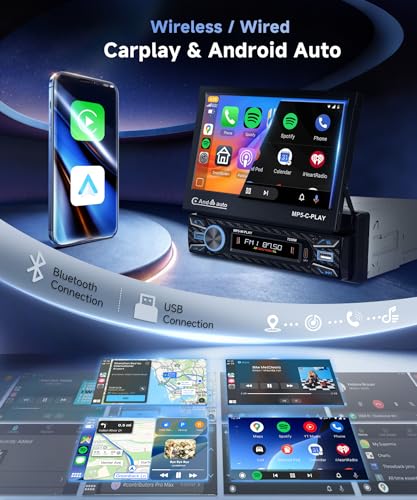 - Orderich Single Din Car Radio with Wireless Carplay Android Auto 7 Inch Touchscreen Car Stereo