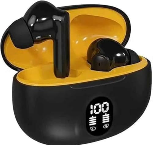 - علبة شحن محمولة: حافظة أنيقة بألوان أسود وأصفر تحافظ على السماعات وتشحنها أثناء التنقل