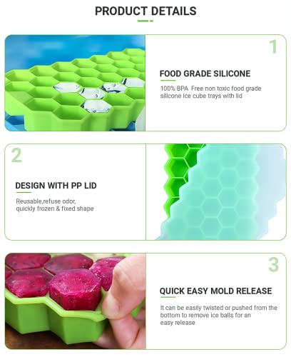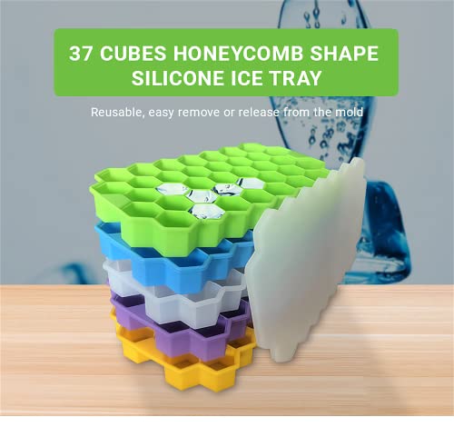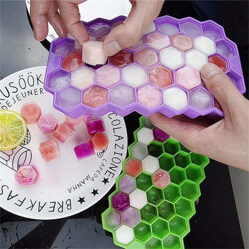 OREN EMPOWER- create your choices - قالب مكعبات ثلج مرن من السيليكون بتصميم شكل خلية نحل من 37 تجويف للفريزر وصنع كيك الشوكولاتة قابل لإعادة الاستخدام من اورين امباور - متعددة الألوان 0 (عبوة من 4 قطع)