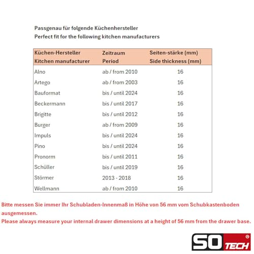 - المزايا: مصممة خصيصًا للأدراج بعمق 500 ملم، تتوافق حشوة أدوات المائدة مع مطابخ النو وويلمان طالما أن سمك جانب الخزانة 16 ملم.