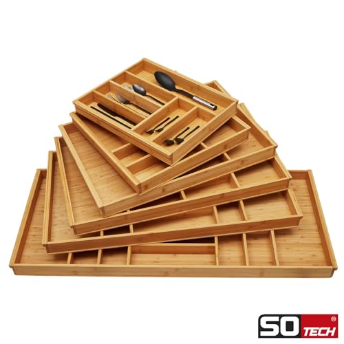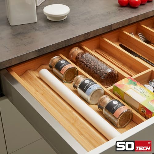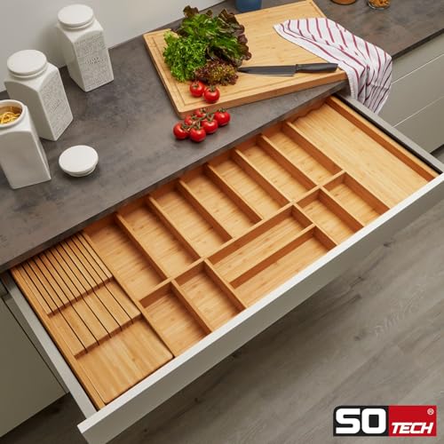 Orga-Box - صينية ادوات مائدة بامبو من اورج-بوكس مع 15 قسم لادراج المطبخ ويلمان والنو في صينية ادوات مائدة خشبية مقاس 120 سم