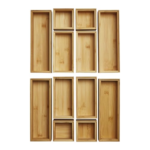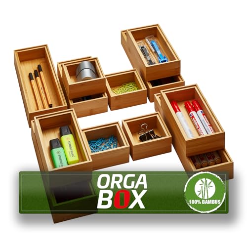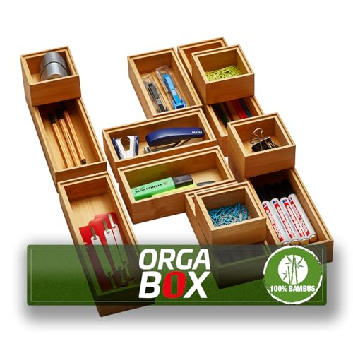 Orga-Box - مجموعة صناديق تخزين بامبو من اورج-بوكس مكونة 12 قطعة مزيت 3 مقاسات 85-171-257 × 85 50 ملم منظم قابل للتكديس لادراج المطبخ والحمام والمكتب