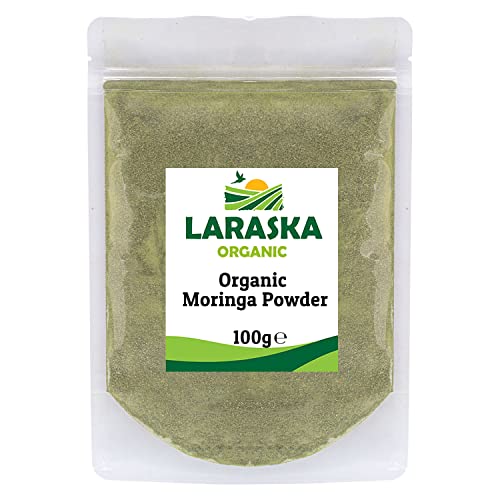 laraska - مسحوق المورينجا العضوي 100 جم، شاي المورينجا والسموذي والمشروبات ومسحوق أوراق المورينجا العضوي المعتمد
