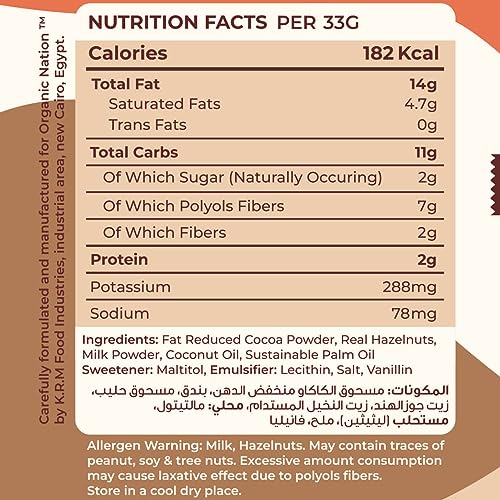- مصنوعة من مسحوق الكاكاو ومسحوق الحليب وزيت جوز الهند والمالتيتول والفانيليا