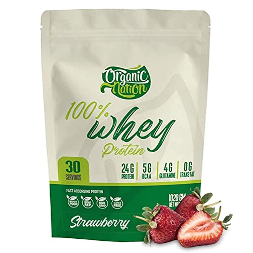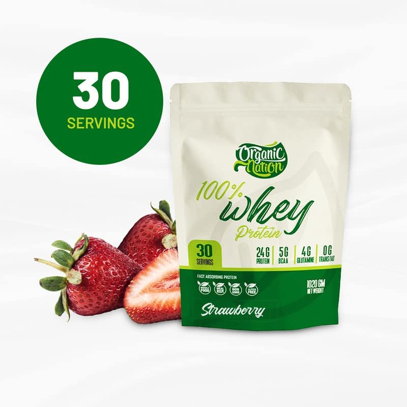 ORGANIC NATION - بروتين مصل اللبن من اورجانيك نيشن يساعد في بناء العضلات بدون اكتساب دهون بديل للوجبات طاقة لا نهاية لها مثالي للرياضيين صديق للنظام الغذائي 1020 غرام بروتين 24 غرام فراولة