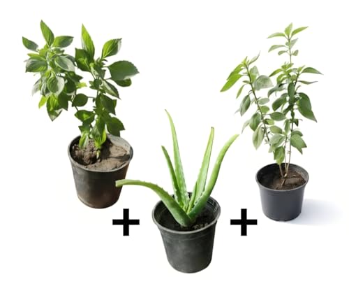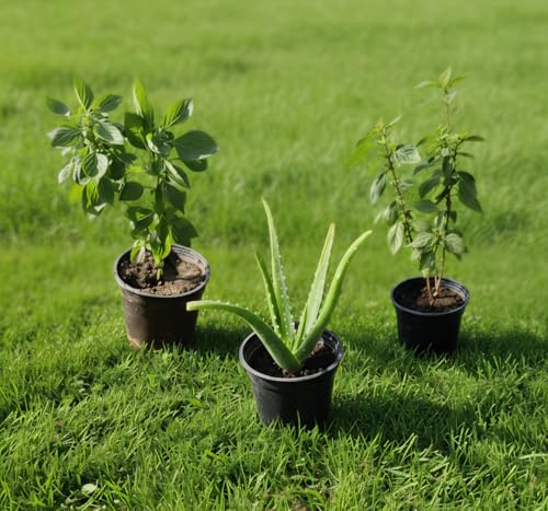 Generic - مجموعة نباتات عضوية، 3 شتلات متنوعة من الريحان البلدي الاورجانيك والريحان الإيطالي الاورجانيك وصبار الألوفيرا، نباتات داخلية وخارجية مناسب للبلكونات وللحديقة المنزلية