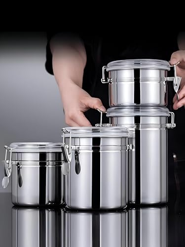 Generic - طقم برطمانات توابل منظمة - 4 قطع من حاويات من الفولاذ المقاوم للصدأ مع أغطية، تتميز بعدد 4 مقاسات: 13 سم، 15 سم، 18 سم، 22 سم للتخزين والديكور في المطبخ.