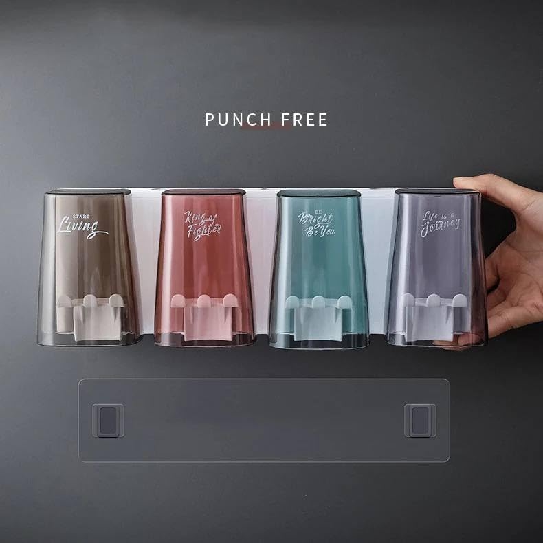- منظم وحامل فرش الأسنان والمعجون ومستلزمات الحمام 4 خانة حامل مزود ب 4 بأكواب اكريلك يتم تعليقة ب استيكر دبل فيس قوي