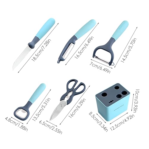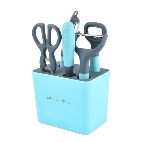 Generic - مجموعة منظم - مجموعة ادوات مطبخ 5 في 1 مع 4 فتحات وسكين ومقشرة وفتاحة ومصفاة من البلاستيك الملون المتين لجميع احتياجات الطبخ