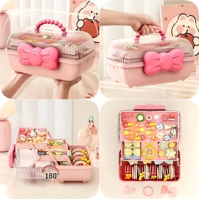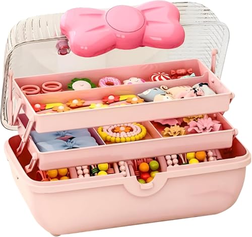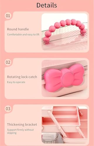 Generic - صندوق تخزين منظم متعدد الطبقات بلاستيك مع قفل، شنطة تنظيم مجوهرات، منظم مكياج واكسسوارات مقسم، صندوق تنظيم مجوهرات للسفر للنساء والبنات