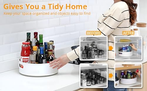 - تم تصميم صينية التنظيم متعددة الاستخدامات والدوران بزاوية 360 درجة لزيادة كفاءة المساحة من خلال السماح لك بتخزين التوابل أو مستلزمات المؤن أو مستلزمات الحمام بطريقة صغيرة يسهل الوصول إليها، مما يجعلها مثالية للاستخدام في المطبخ أو خزانة المؤن أو الثلاجة أو خزانة الحمام.