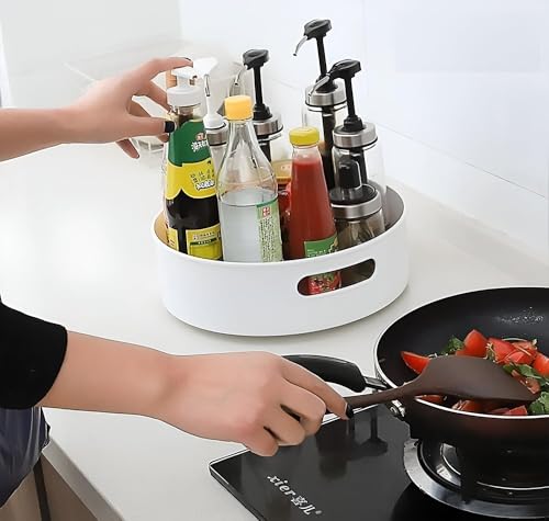 - تتيح لك ميزة الدوران لهذا القرص الدوار الكبير الوصول إلى العناصر بسهولة عن طريق تدوير الصينية ببساطة، مما يلغي الحاجة إلى نقل الأشياء الأخرى أو الوصول إلى المساحات العميقة، مما يعزز الراحة في مختلف المناطق المنزلية.