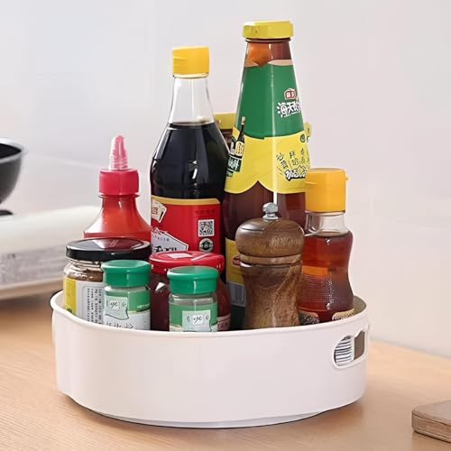 Generic - صينية تنظيم - منظم متعدد الاغراض دوار 360 درجة للمطبخ وتخزين المكياج ومستحضرات التجميل، مثالي لسهولة الوصول وتوفير المساحة، لمسة نهائية كريمية، عبوة واحدة