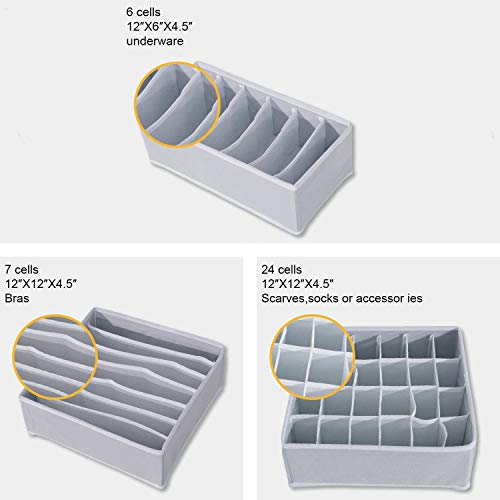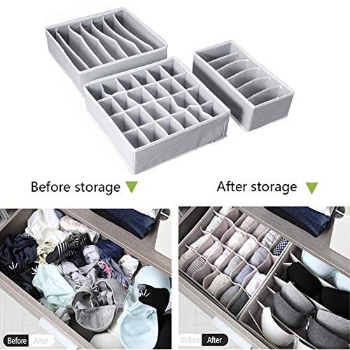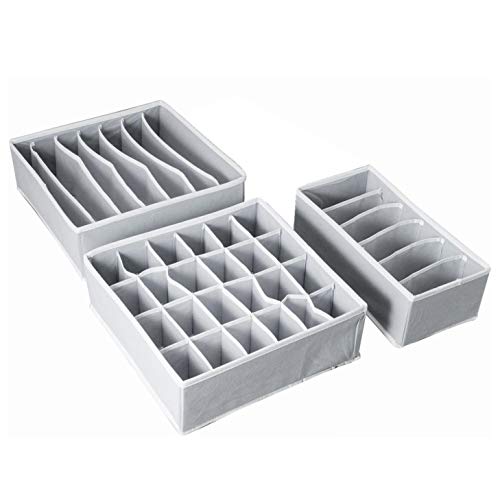 HK - طقم منظم ادراج مقسم من قماش غير منسوج وورق مقوي قابل للطي وموفر للمساحة مكون من 3 قطع، حامل لتخزين الملابس الداخلية وحمالات الصدر والجوارب والكرفتات والسكارفات مناسب للخزانة المنزلية،( بلون رمادي)