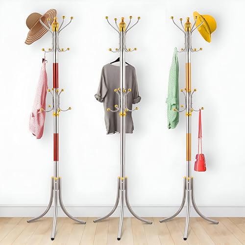 - شماعة المعاطف هذه مصنوع من فولاذ مقاوم للصدأ ممتاز، وتتميز بإطار فضي لامع يضيف لمسة من الأناقة إلى ديكورك، ويضمن أيضًا المتانة وطول العمر. يمكن للمادة المتينة أن تتحمل الاستخدام اليومي، مما يجعلها خيارًا موثوقًا به للمنازل المليئة بالحركة. تصميمها القوي يعني أنه يمكنك الوثوق بها لحمل أغراضك بأمان بدون أي خطر من الانحناء أو الكسر.